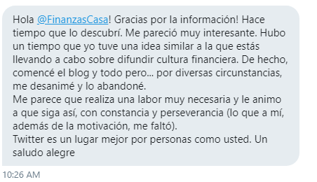 Y los que compartís esta afición por divulgar y dar conocimiento, lo sabéis, detrás de cada post no hay solo un par de horas sentada delante de un ordenador escribiendo, hay horas de investigación, de aprendizaje… tardes leyendo un libro sentada en una grada mientras mi hija juega al tenis, partidos de futbol de mi hijo contestando en twitter, planchar viendo videos en la tablet y apuntando ideas, haciendo tareas de la casa mientras escucho podcast… o idas y venidas a las clases de inglés hablando por teléfono con algún que otro profesional del sector (por cierto si alguna vez no hablaba mucho es porque estaba subiendo una cuesta… :)) Aún así, merece la pena y mucho, es una actividad muy gratificante, y lo sé porque cada vez que recibo un mensaje, un correo… dándome las gracias por la labor que hago, o pidiéndome consejo para ver qué hacer con los ahorros, o diciéndome que han ahorrado, es un subidón tremendo para seguir con esta tarea que por si no lo he dicho ¡me encanta! Sí, me encanta sentarme delante del pc y escribir, dejar salir mi vena crítica, o la de reflexión, o la de hacerte ver que las finanzas son más de sentido común que de complicadas técnicas.